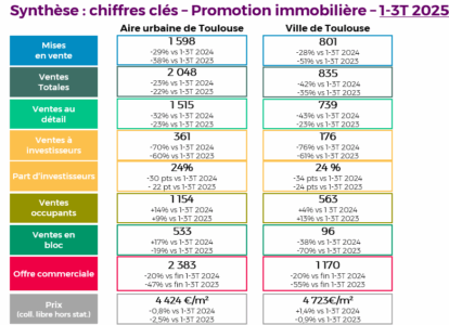 Ainsi, à l’échelle du 1-3T2025, on dénombre moins de 1 600 logements mis en commercialisation et 1 515 ventes nettes, des niveaux bas jamais atteints.